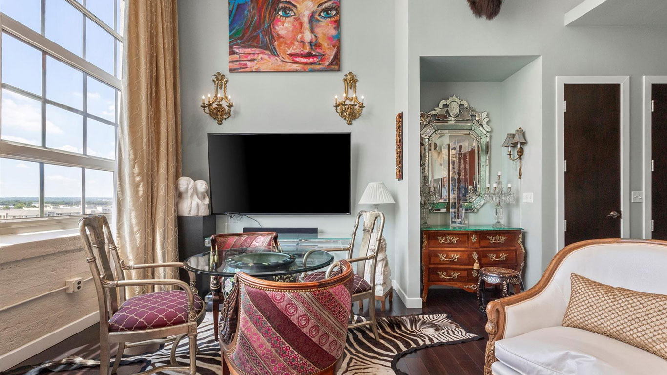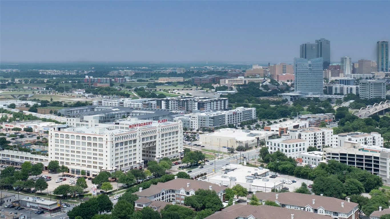 Sophisticated condo in Fort Worth’s West 7th/Cultural District featuring soaring 16-ft ceilings, pool views, dark wood floors, and a gourmet kitchen with custom cabinetry and premium appliances. Includes two spacious bedrooms, spa-like primary bath, and full guest bath. Enjoy resort-style Montgomery Plaza amenities—pool, cabanas, fire pits, gym, theater, concierge—and side-by-side parking for effortless urban living.