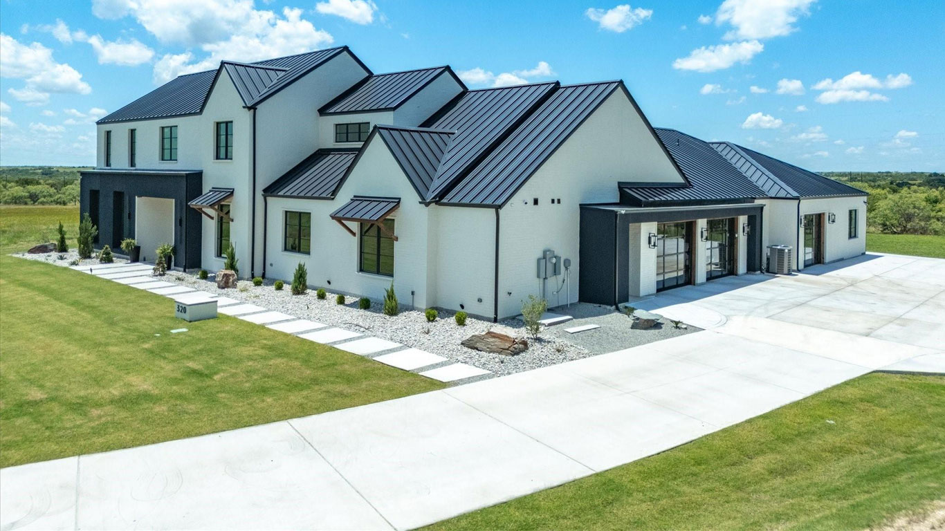 Modern Rustic Refined! MUCH anticipated fabulous new listing just in at 320 San Gabriel Dr. in Aledo’s most exclusive, La Madera Estates is LUXURY redefined! Loaded with the absolute FINEST in interior finishes from floor to ceiling and everywhere in between — this incredible property spares no expenses. The kitchen is a STUNNER with GORGEOUS color scheme and upgraded commercial appliances, as well as built in SS fridge; plus a luxurious primary spa bath with a closet to die for, full media room, and arguably the most favorite room in the house will surely be the in-home gym with the edgiest bar around that has pull up glass doors that bring the outdoors in. All bedrooms have ensuite baths (each wonderfully done and decorated), plus a full concrete safe-tornado safety room with vault door, high-end glass double entry doors, as well as triple slider exterior doors, 4 car garage spaces each with glass doors, hardwood flooring thru out, and modern on-trend steel roof. Sits perfectly on hilltop lot with stately curb appeal and on a great 3 acre VIEW lot with the prettiest country setting and upscale estate properties all around. Acclaimed Aledo Schools.