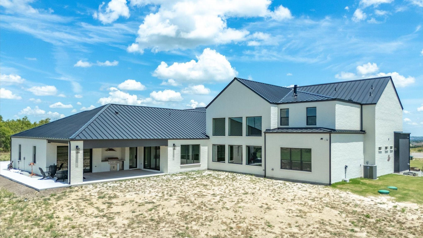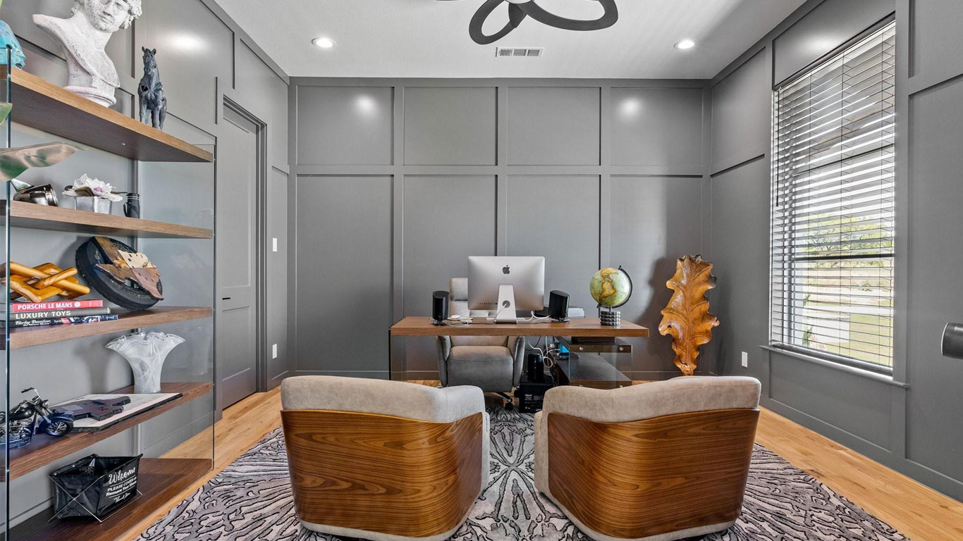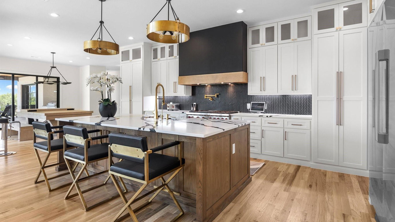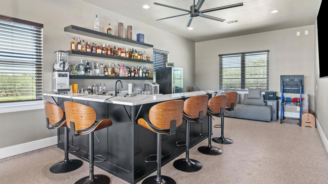 Modern rustic luxury on a 3-acre hilltop lot featuring a stunning designer kitchen, spa-style primary suite, in-home gym with indoor-outdoor bar, full media room, ensuite bedrooms, tornado-safe room, steel roof, hardwoods throughout, and four glass-door garages—all in exclusive La Madera Estates with acclaimed Aledo schools.
