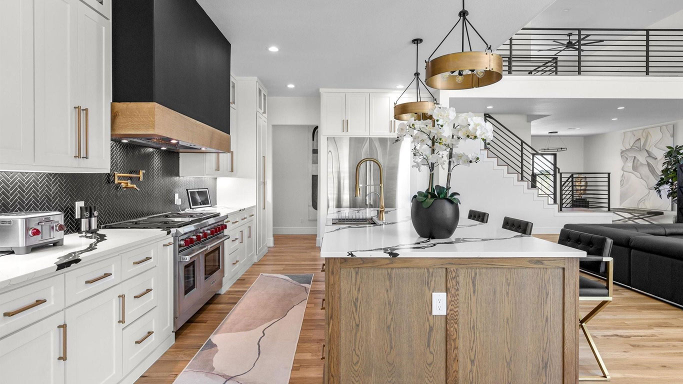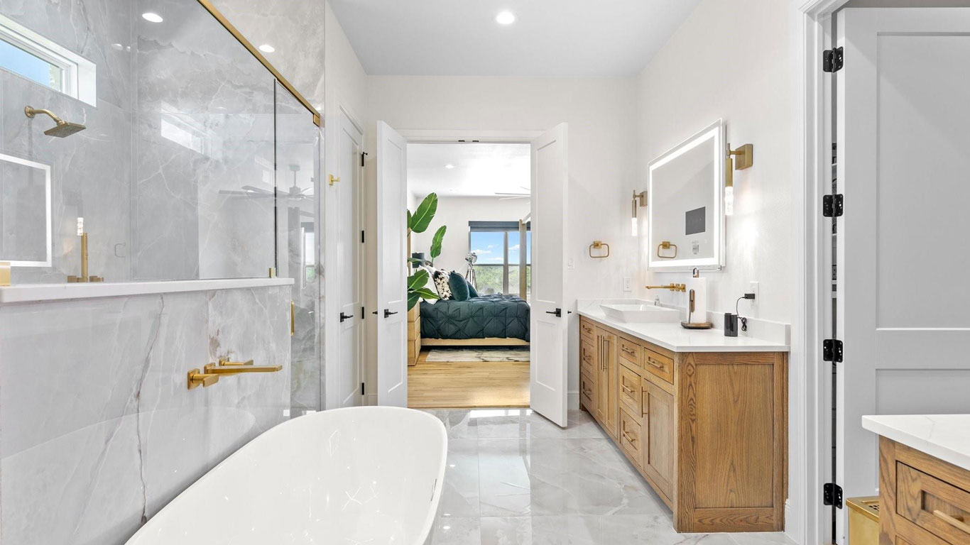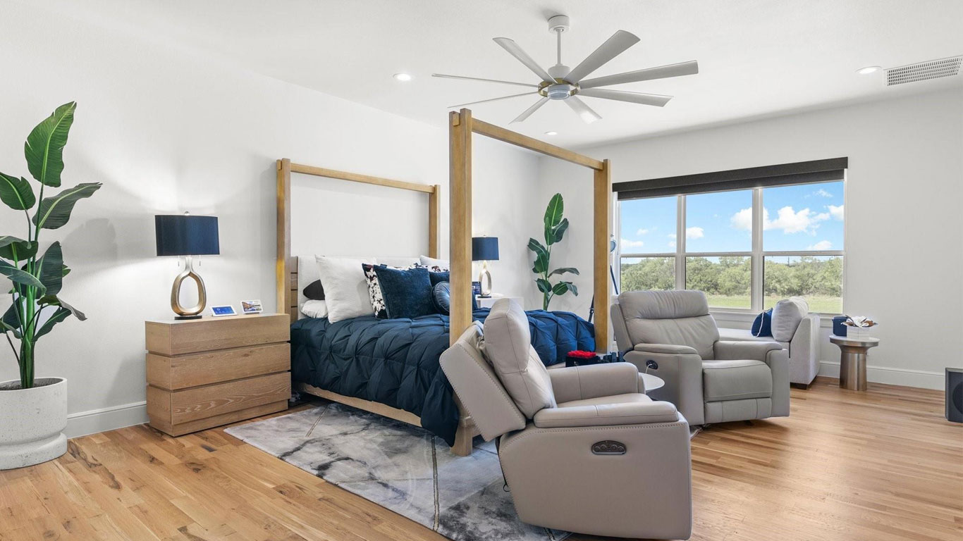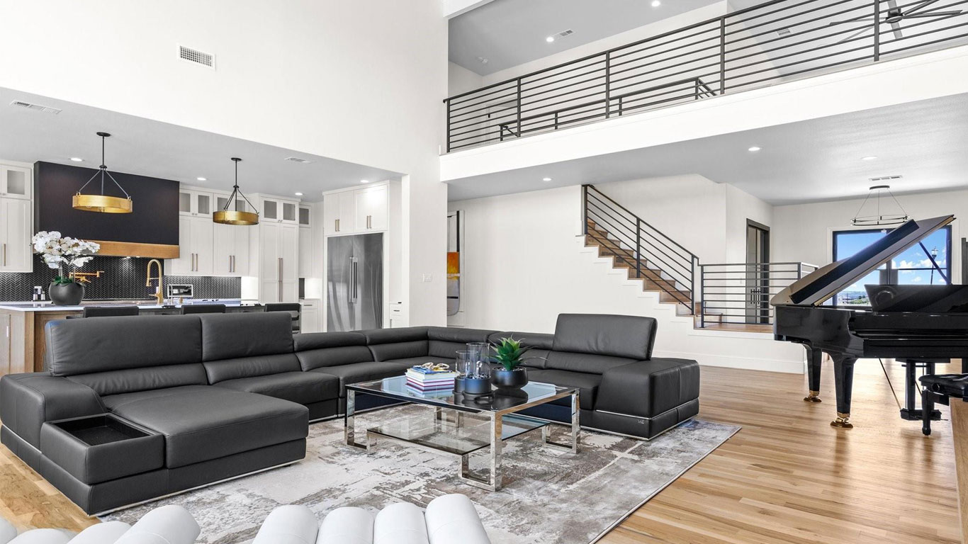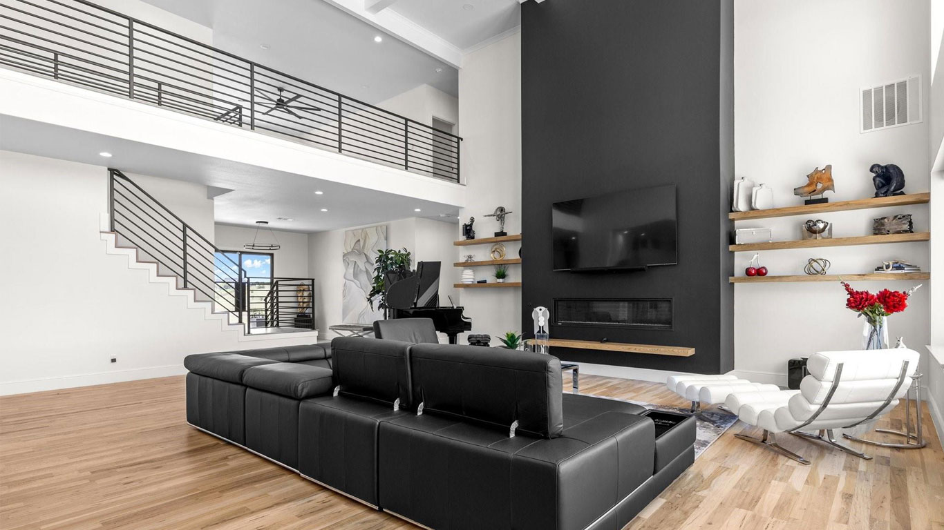 Modern rustic luxury on a 3-acre hilltop lot featuring a stunning designer kitchen, spa-style primary suite, in-home gym with indoor-outdoor bar, full media room, ensuite bedrooms, tornado-safe room, steel roof, hardwoods throughout, and four glass-door garages—all in exclusive La Madera Estates with acclaimed Aledo schools.