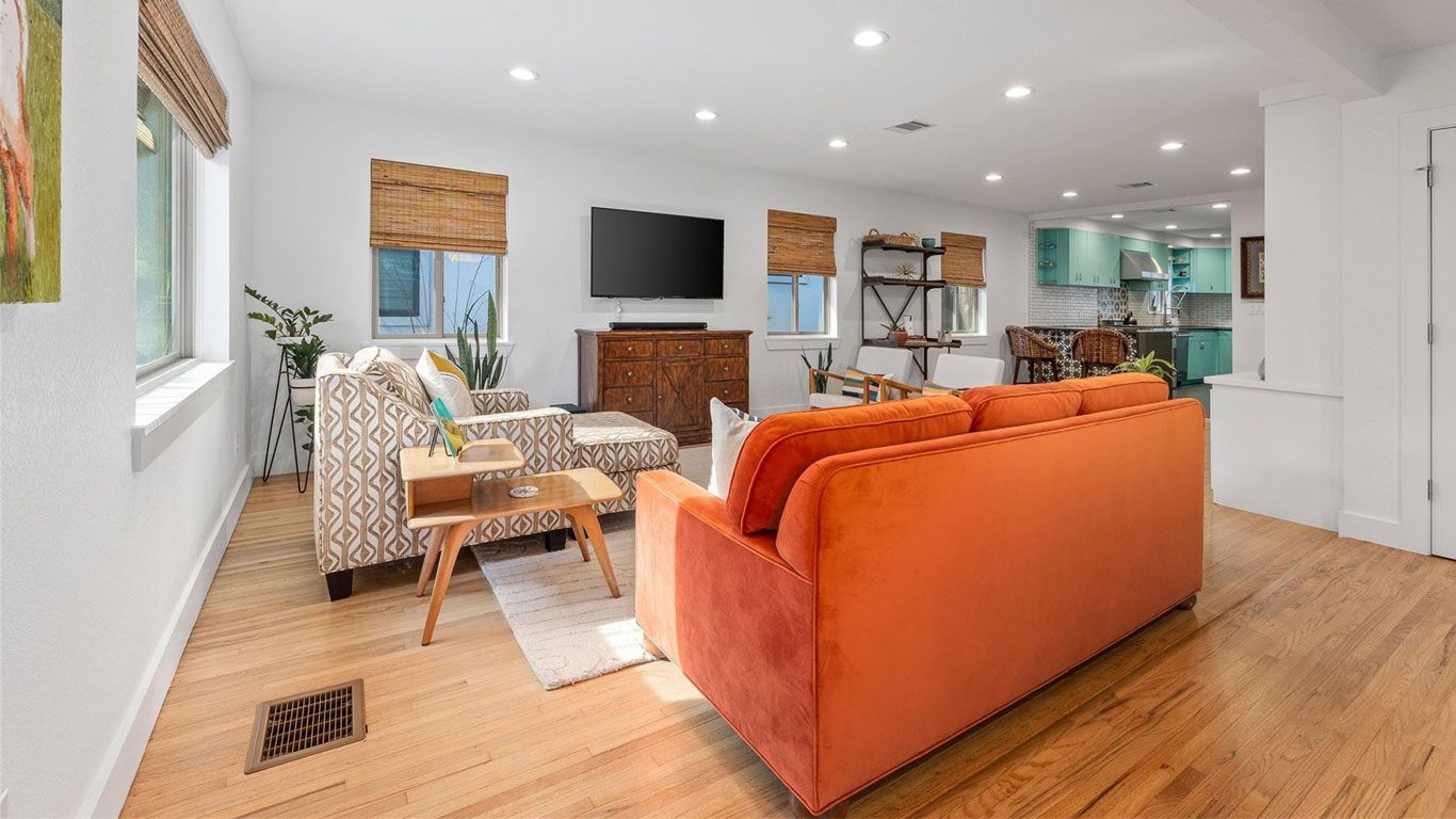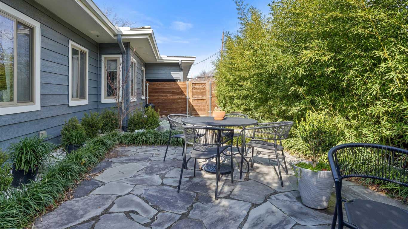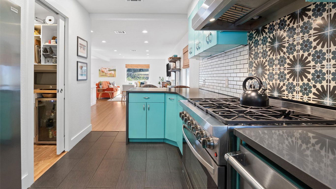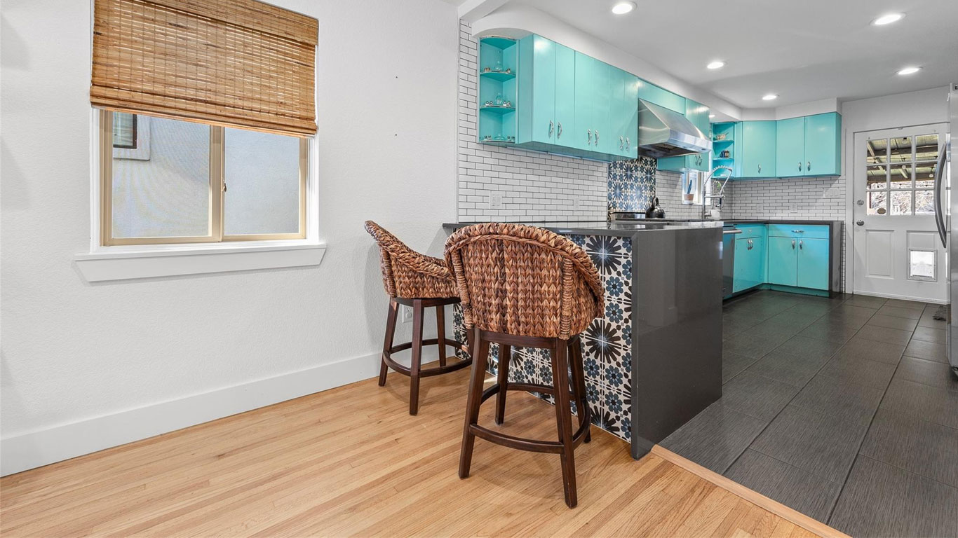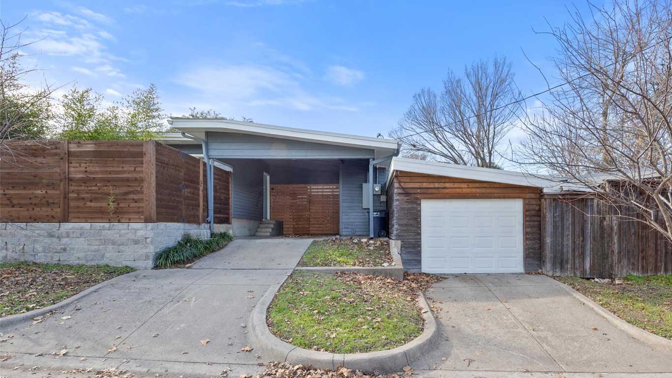 Beautifully restored mid-century Arlington Heights home with high-end 2020 updates, modern systems, white oak floors, metal kitchen cabinetry, marble bath, greenhouse, and a serene flagstone courtyard—steps from Dickies Arena and fully move-in ready.
