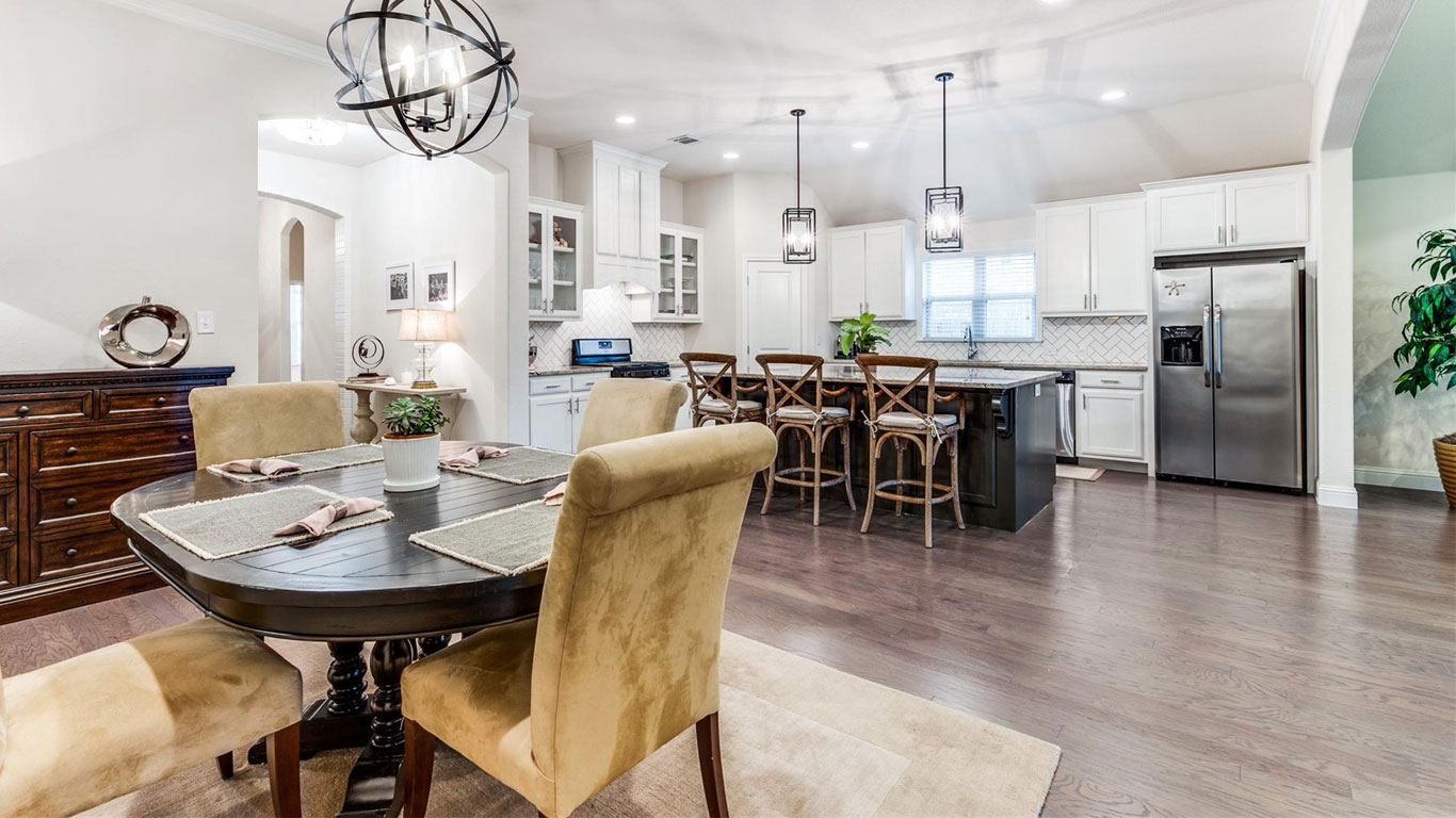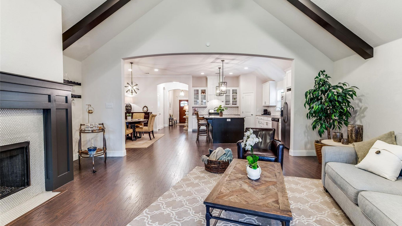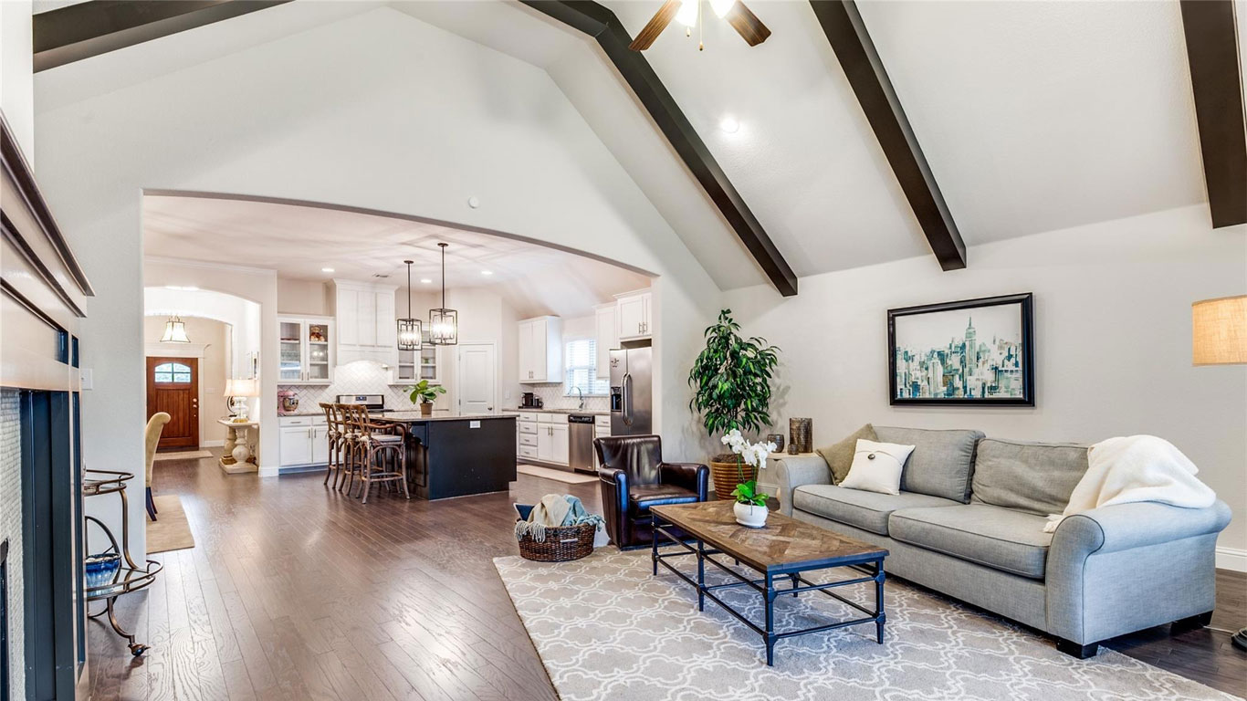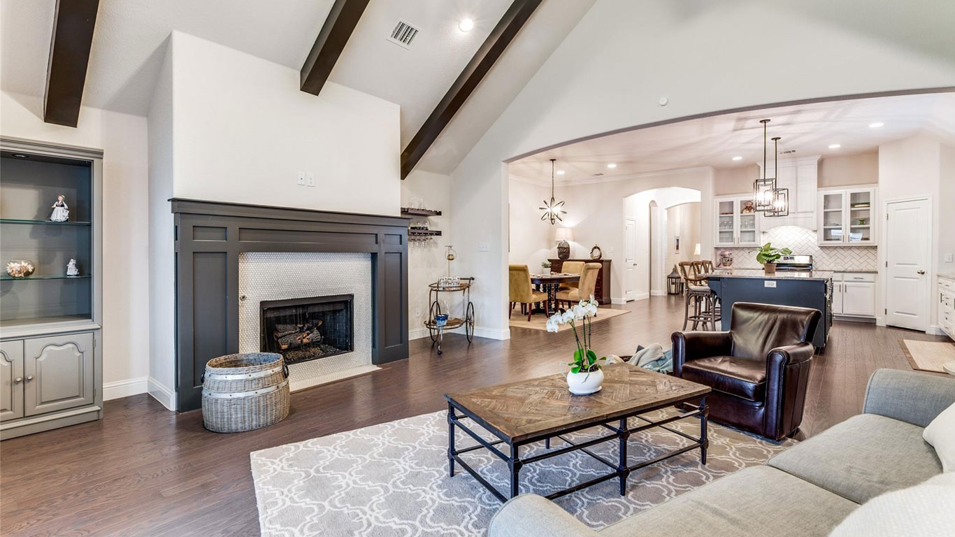 This gated Trinity River home offers an open layout with a gourmet kitchen, vaulted living room with fireplace, a spa-like owner’s suite, and private split bedrooms. Close to Trinity Trails and walkable dining, it blends comfort, convenience, and community.