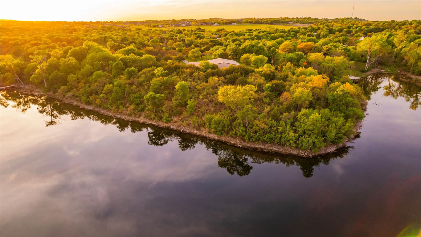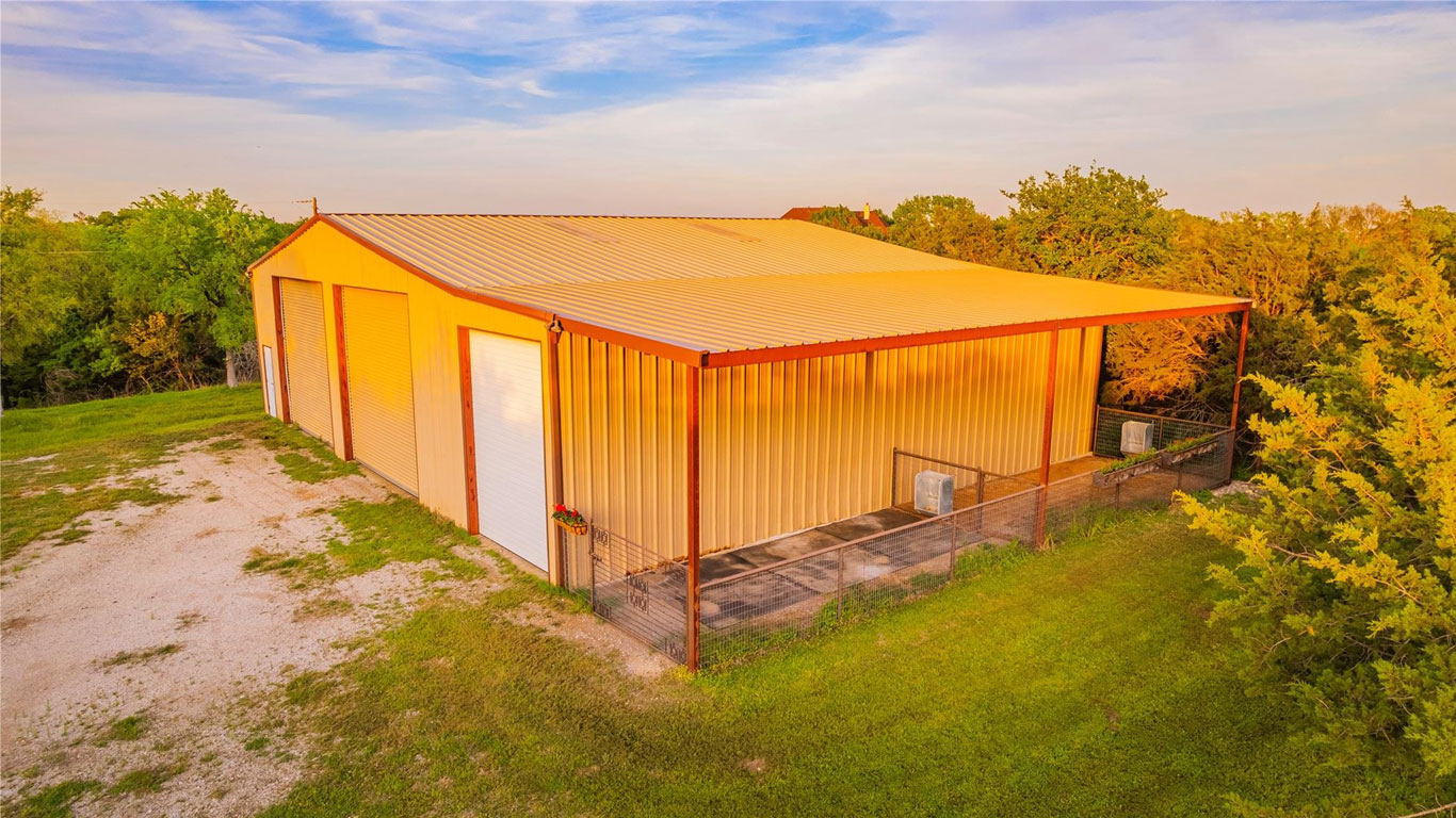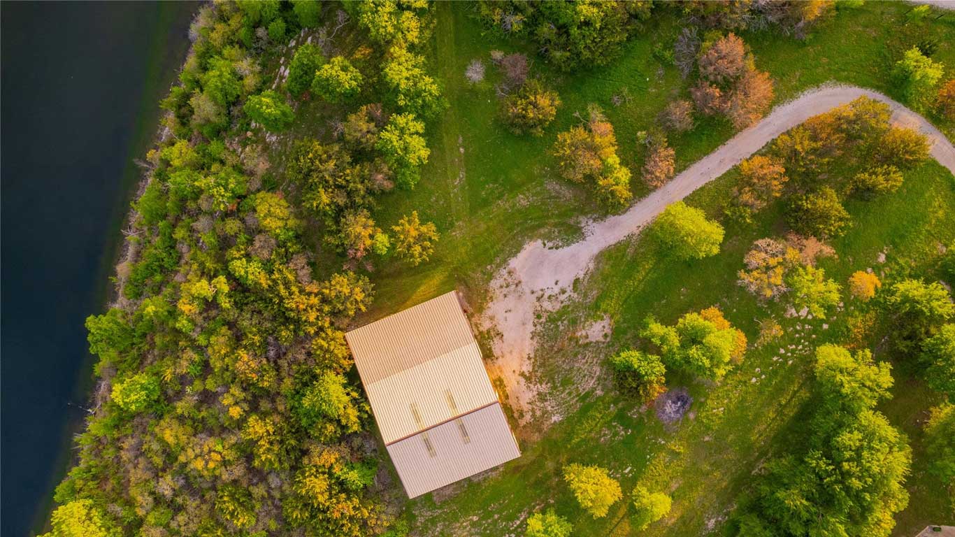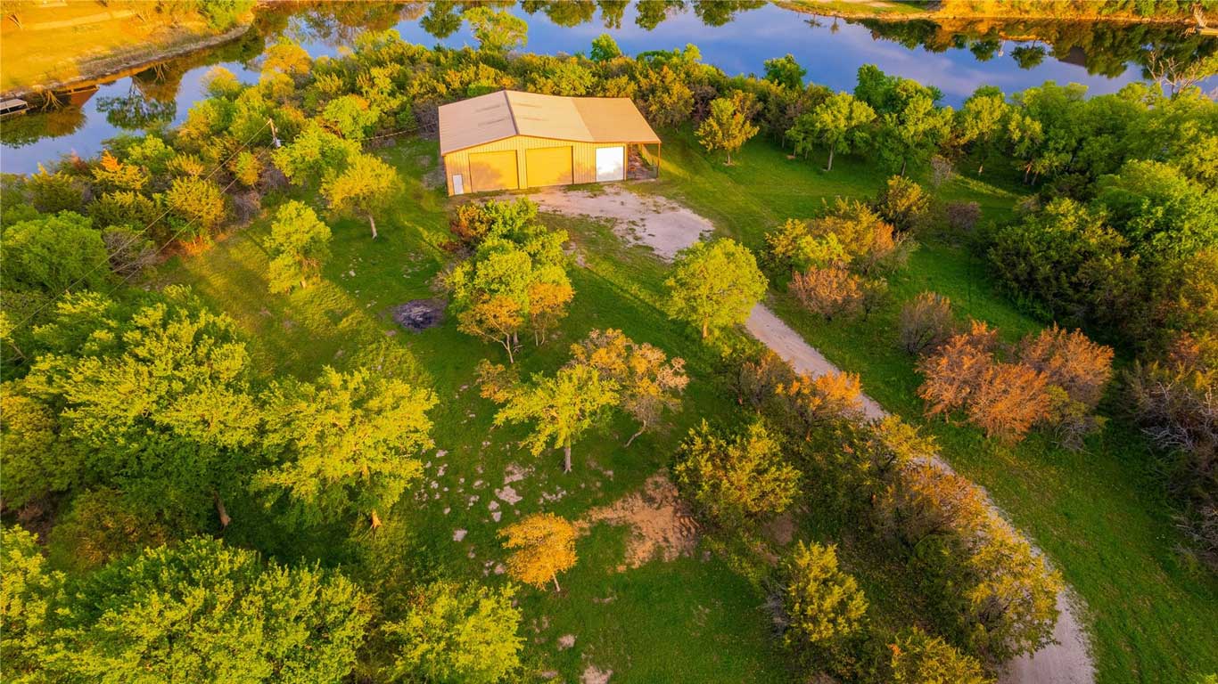 Secluded lakefront and bluff-top lot in Parker County featuring an expansive shop, strategic clearing, fencing, and horse-friendly space—ready for your dream home!