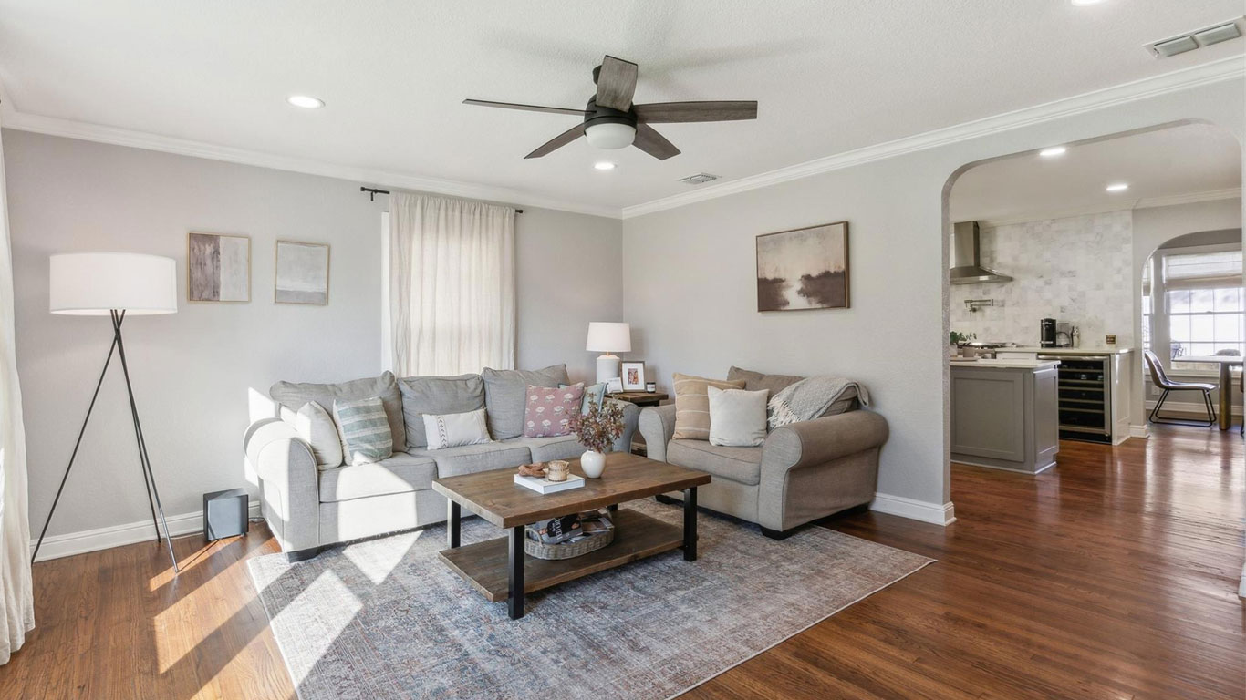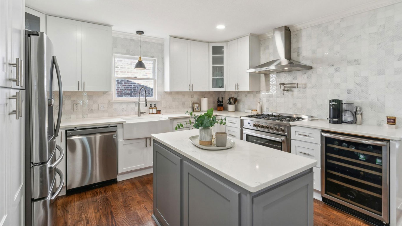 This fully renovated 4-bedroom home offers an open, light-filled layout with hardwood floors and a custom quartz kitchen, plus a spacious primary suite, TREX deck, and new oversized 2-car garage—all just steps from Roy Pope Grocery and Sanguinet Park.
