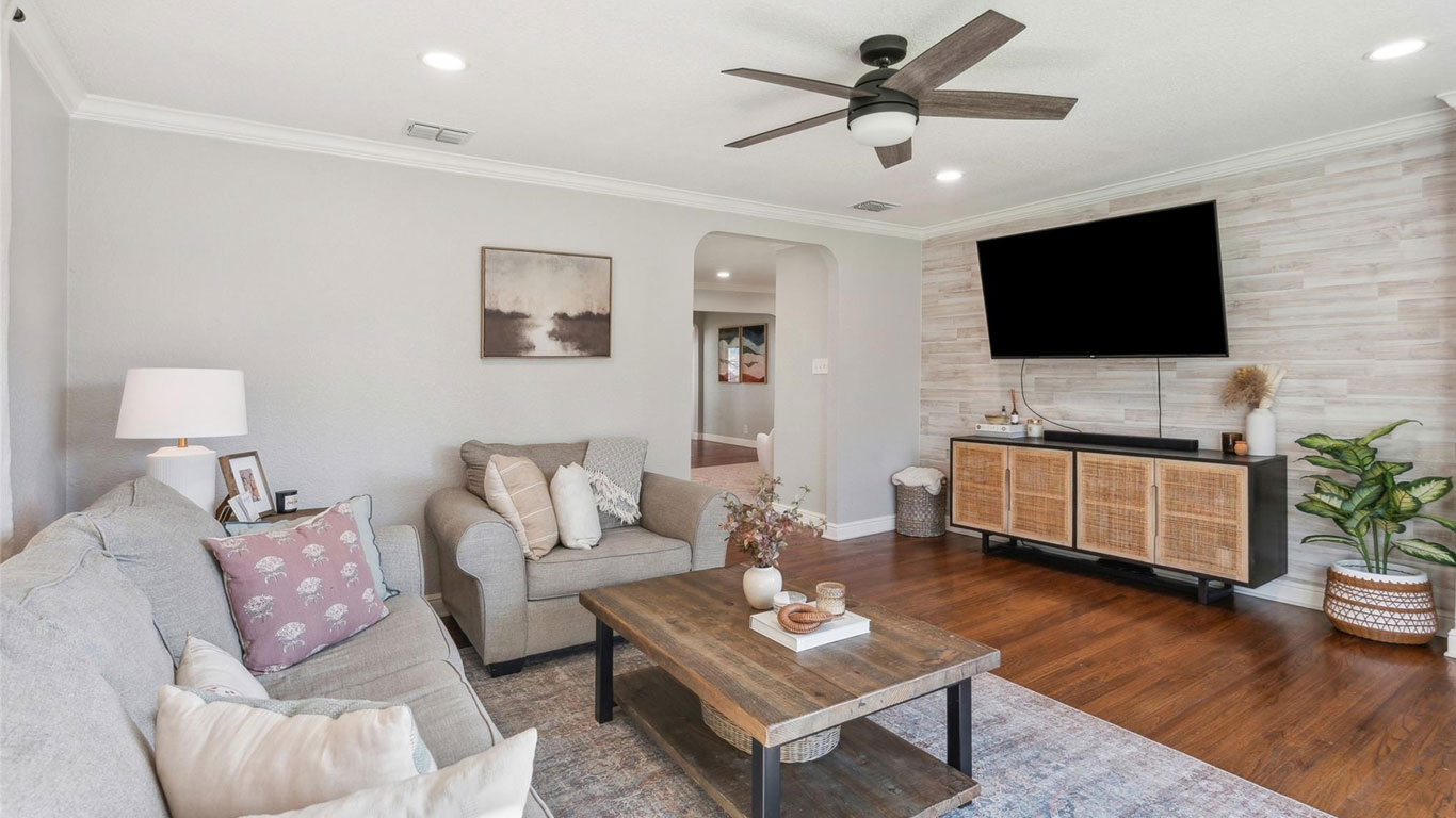 This beautifully renovated 4-bedroom home features an open floorplan with hardwood floors, abundant natural light, and a stunning custom kitchen with quartz counters and premium appliances. The spacious primary suite offers a large walk-in closet and ensuite bath, while the backyard includes a TREX deck and new oversized 2-car garage. Updated top to bottom in 2020, it’s steps from Roy Pope Grocery and Sanguinet Park.